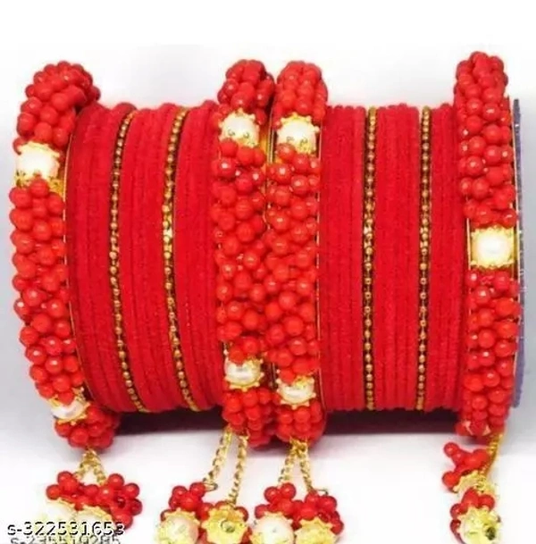 Bangles SetBase Metal : Five MetalPlating : Gold PlatedStone Type : PearlsSizing : Non-AdjustableType : ChoodaNet Quantity (N) : More Than 10Sizes : 2.4, 2.6, 2.8