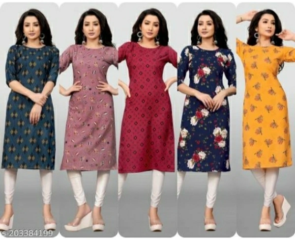 Kurtis Wonderfull 5 Piece Kurti Combo Name: Wonderfull 5 Piece Kurti Combo Fabric: Poly CrepeSleeve Length: Three-Quarter SleevesPattern: PrintedCombo of: Combo of 5Sizes:M (Bust Size: 38 in, Size Length: 42 in) L (Bust Size: 40 in, Size Length: 42 in) XL (Bust Size: 42 in, Size Length: 42 in) XXL (Bust Size: 44 in, Size Length: 42 in) XXXL (Bust Size: 46 in, Size Length: 42 in) Co