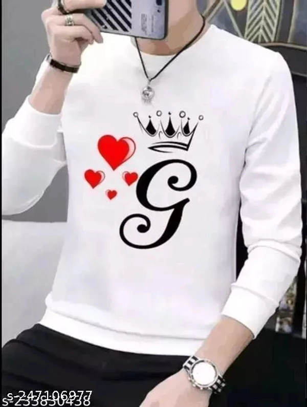 Men's White Printed Round Neck Half Sleeve T-Shirt